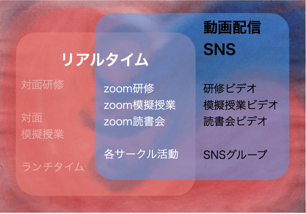 また毎回、オンラインの「クラス研修」「模擬授業」「読書会」の動画を、SNSグループで共有します。